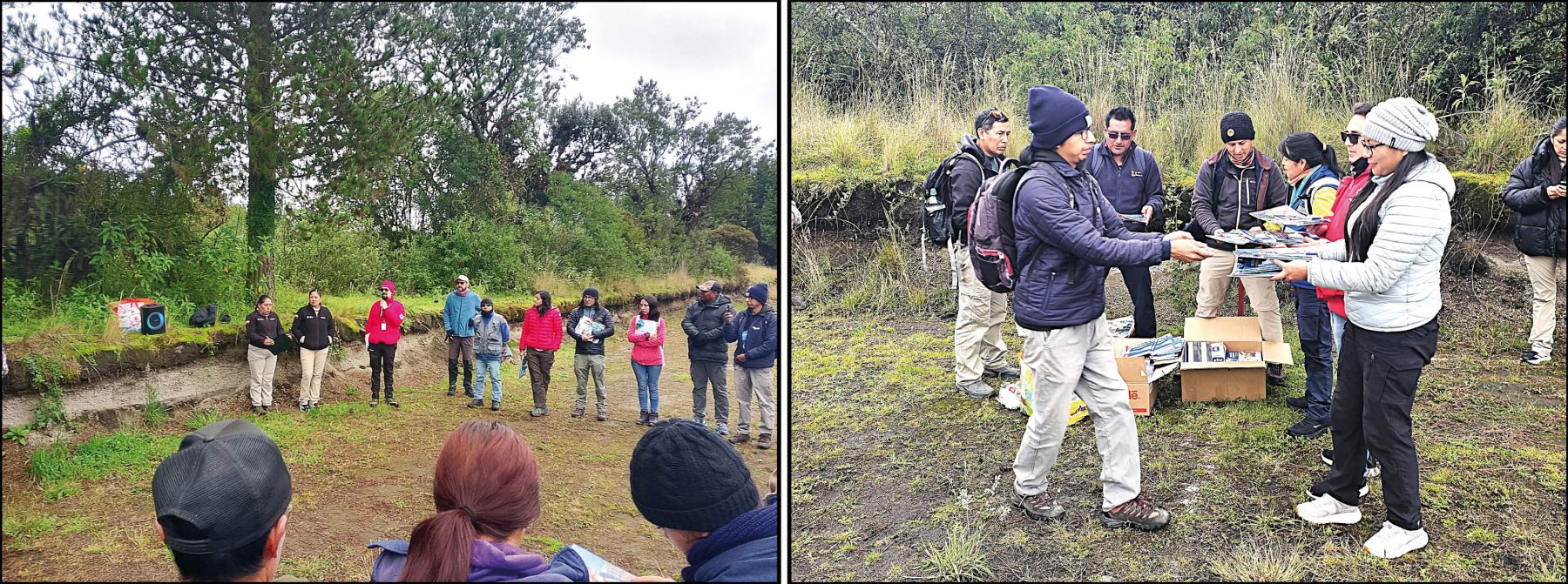 La jornada inició con la recepción y bienvenida de los participantes en la Entrada Caspi del PNC. Allí se entregó un kit de materiales y se brindó una explicación sobre los principales fenómenos volcánicos, como las caídas de ceniza y lapilli, así como los flujos de lodo o lahares.
